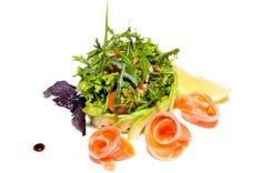 200 г • Салат из семги слабосоленой с рукколой и томатами черри, в розетке из авокадо