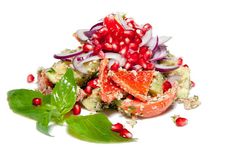 250 г • Салат из свежих овощей под острой ореховой заправкой и гранатом