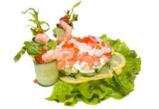 250 г • Креветки, кальмары, свежие огурцы, яйцо, красная икра
